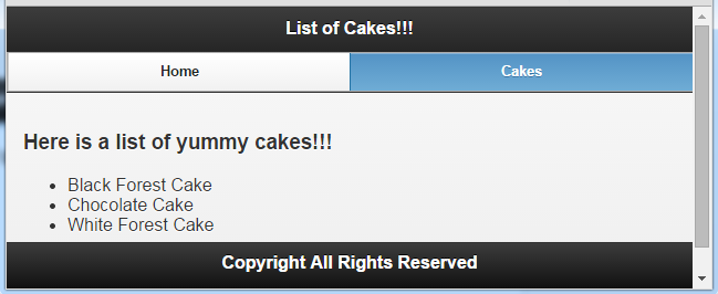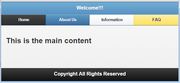 Save the file as navbars.html and open it using your browser. You will get a screen like this: