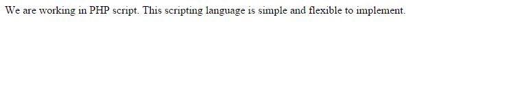 $str="We are working in PHP script. This scripting language is simple and flexible to implement.";