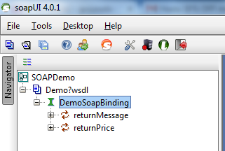 Once again, in SOAP UI, let’s remove the existing Demo project and re-create it, with the previous address: http://localhost:8080/SOAPDemo/services/Demo?wsdl