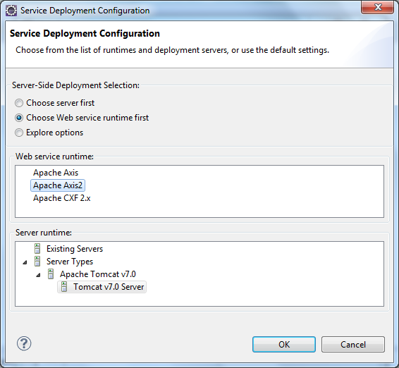 On the configuration part of the screen, click on the Web Service Runtime: and select Axis2 and click OK