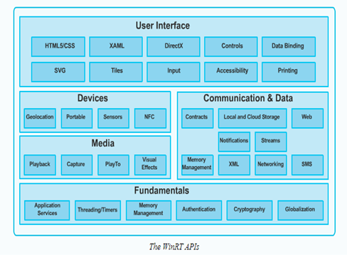 WinRT is a bundle of various APIs those are logically categorized on the basis of their purposes.